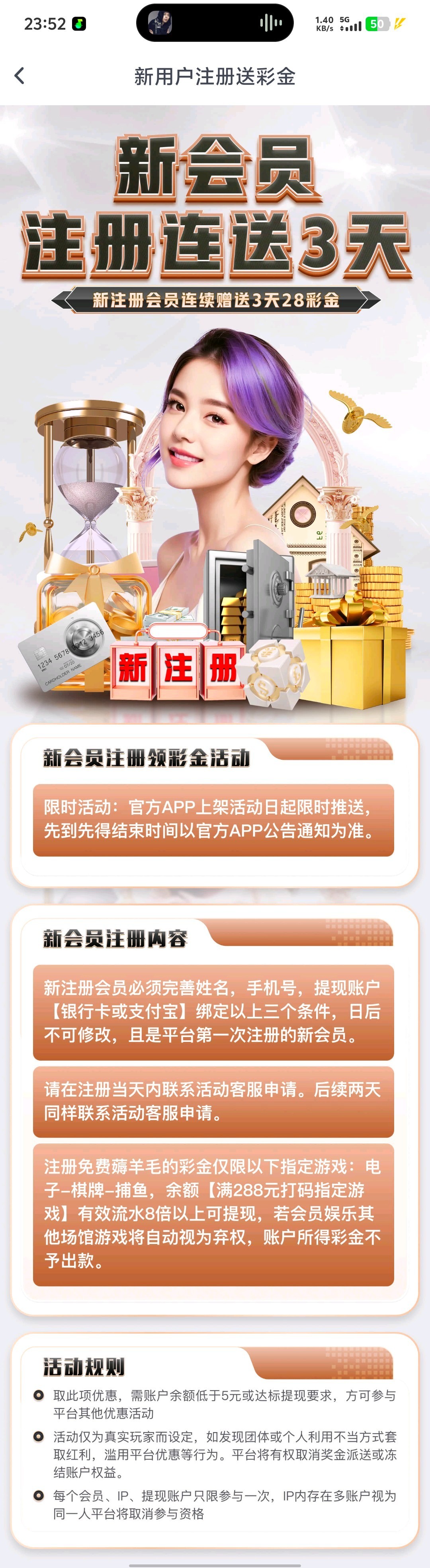 注册绑定信息找客服申请新人彩金可以领取三天 链接U9JJ.com