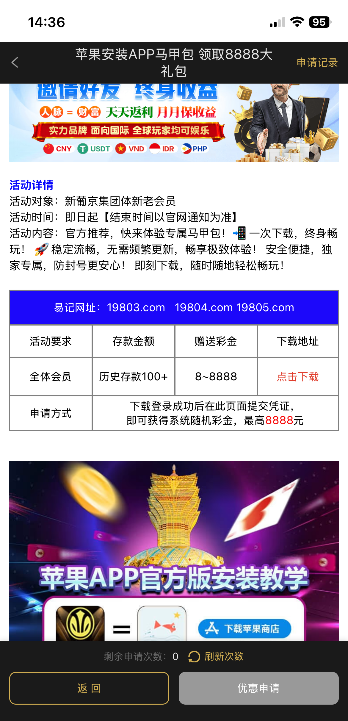 在优惠活动综合里面自己申请,要求及时充值100+,下载苹果马甲包,用马甲包登录截图上传可以领8-8888链接19803.com