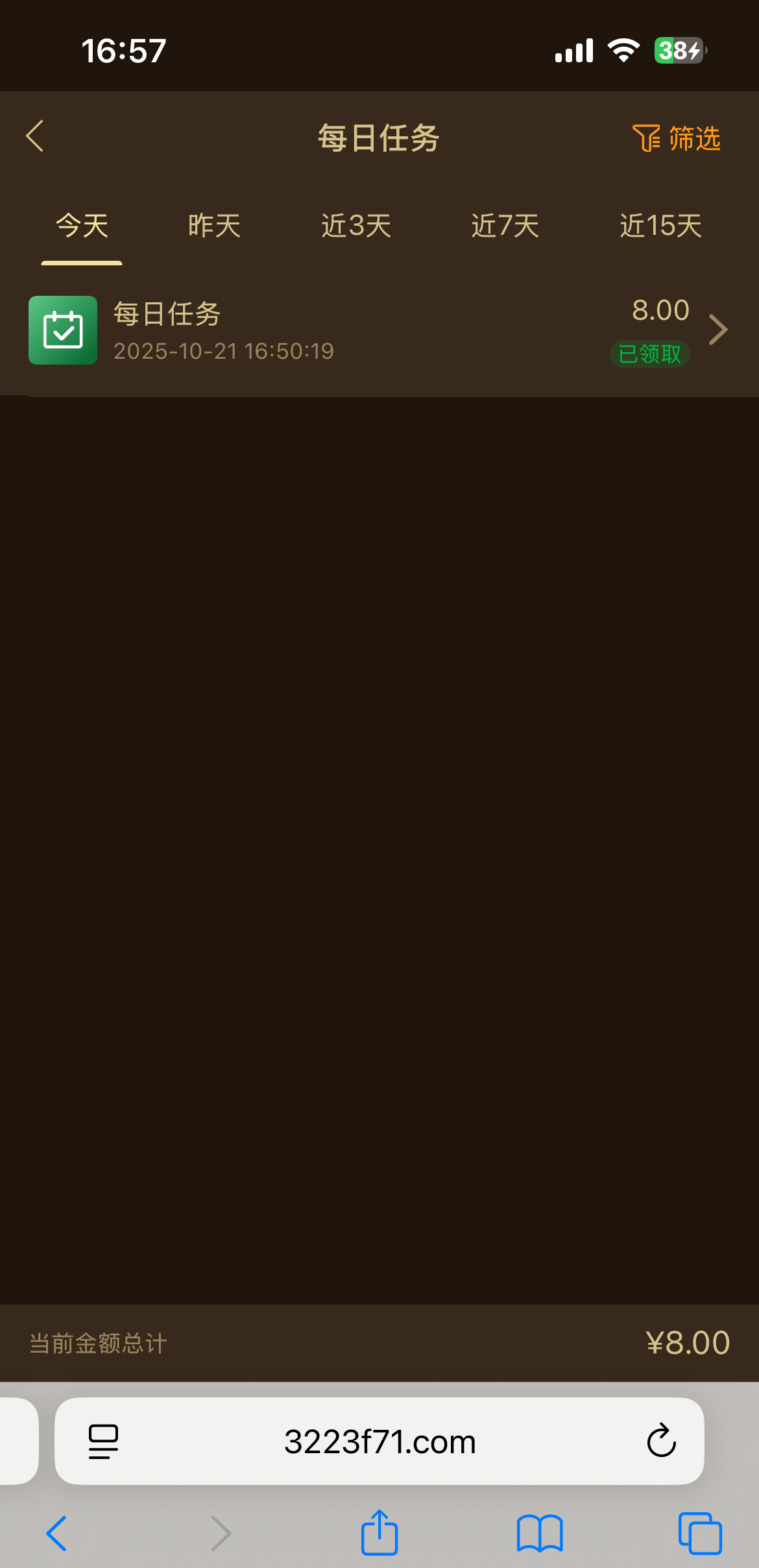之前有老哥发过现在又可以领,每日任务里面完善信息送8 网址3223.com