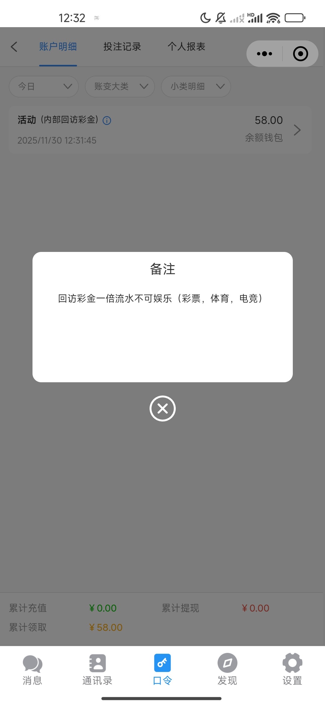 之前充值过,找TB专员碰瓷回馈彩金,给了58