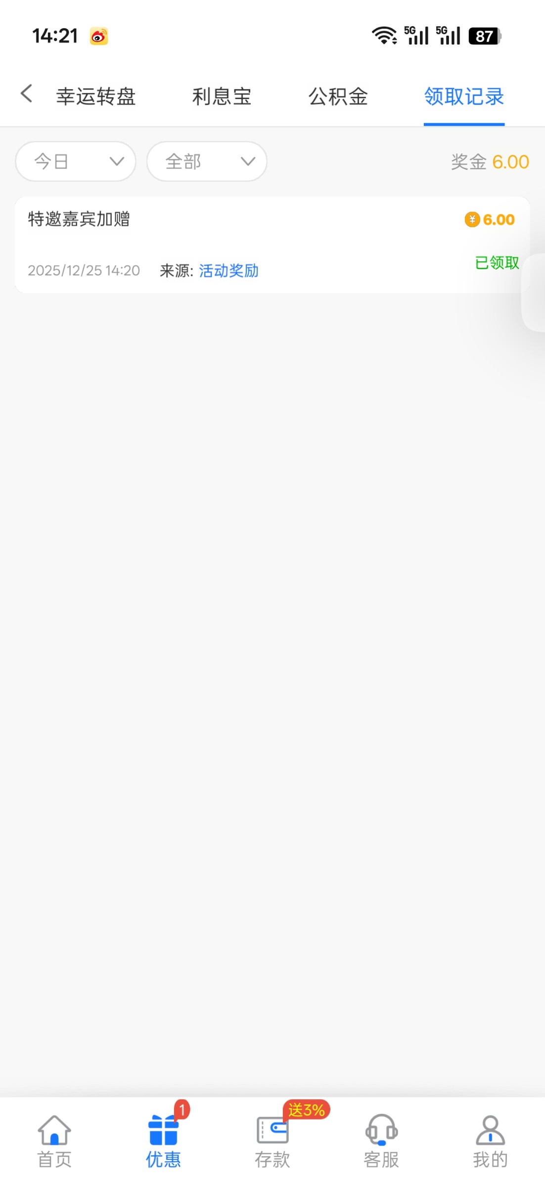 收到短信去的给了6赌神彩金,不知道黑不黑