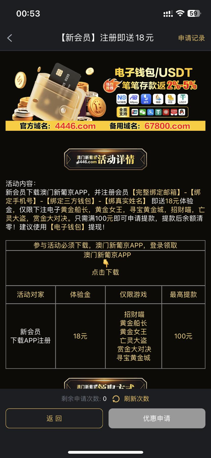 这个平台我领取过特邀,结果现在特邀没了,有个新人送18,应该是人人都可以领取,我用另外一个手机号注册申请到了,活动说的有游戏限制,我先玩的麻将,然后真人,提款发现流水不够,就去刷了活动里面规定的游戏,我害怕不给到账,结果到了