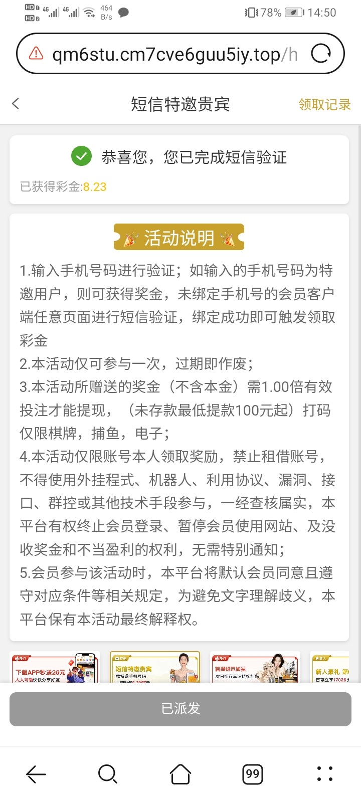 特邀彩金打出来的老哥反馈下