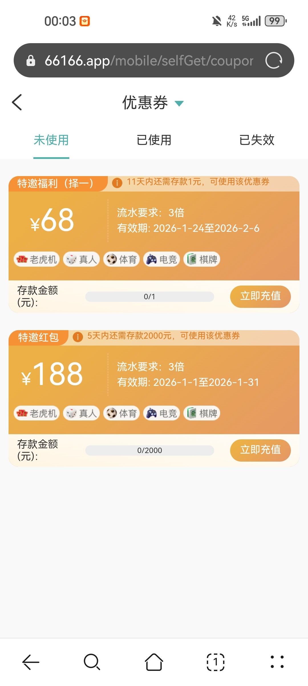 球友会短信特邀送168跟68,68充值一元可用168要充值2000