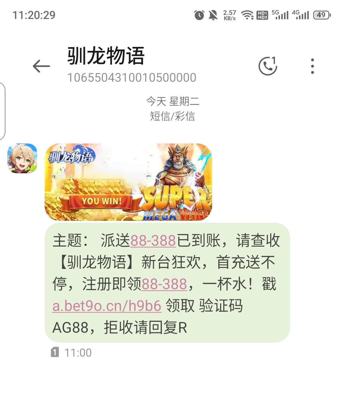 我是收到短信去的