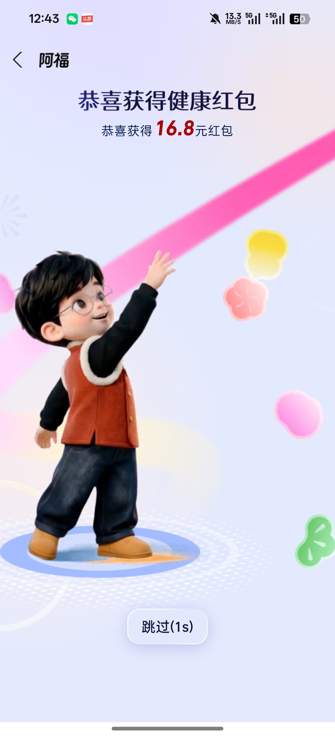 zfb 搜集福气 右上角下载蚂蚁阿福那个活动 现在必中16.8 从来没弄过的去