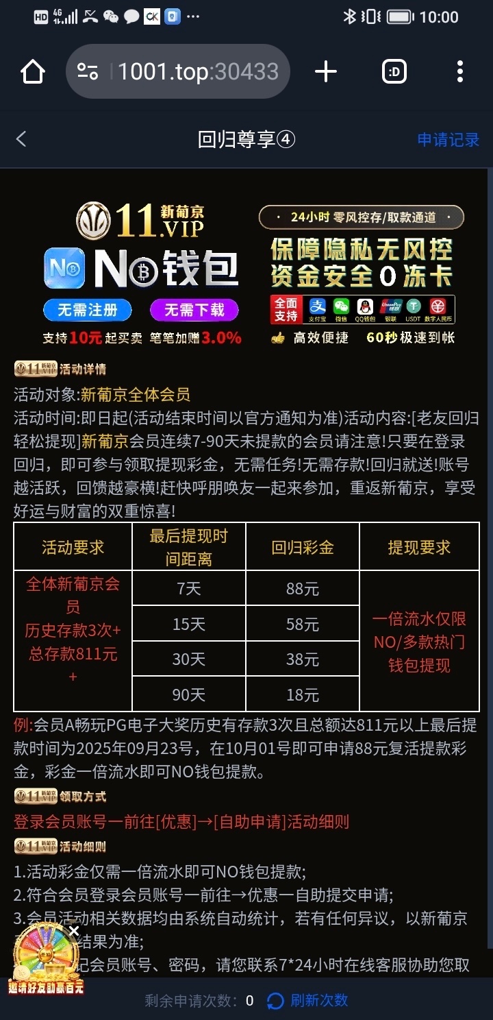 回归彩金符合的去申请小吃300
